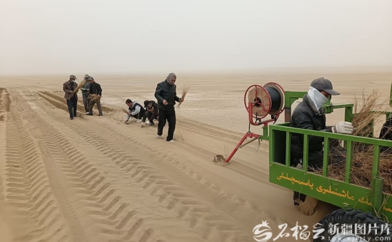 于田县达里雅布依乡达里雅布依新村,村民在新开垦的沙地种植梭梭。云居来·吾不力供图